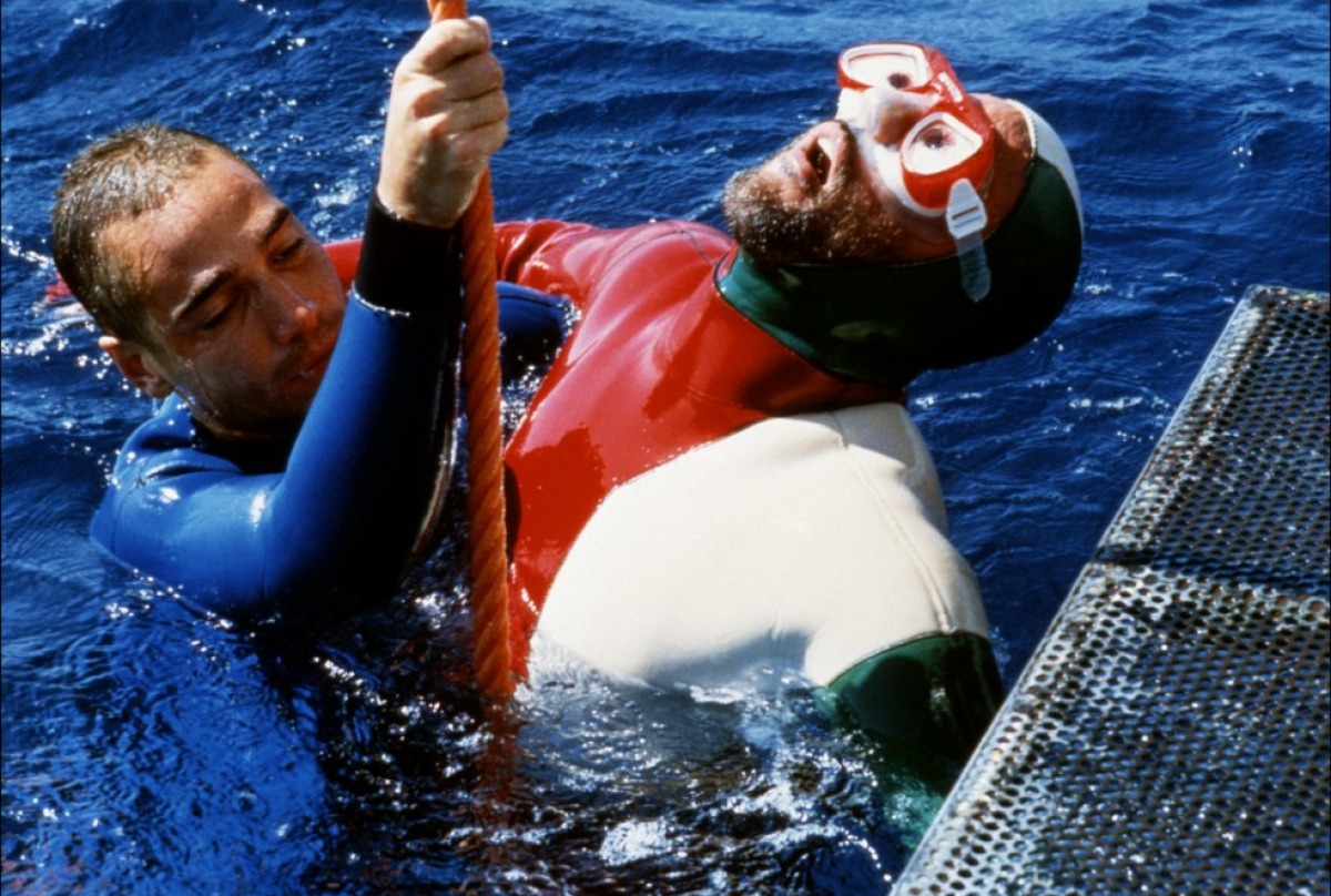 L’altro è Jacques Mayol, non solo un apneista fondamentale nello sviluppo della disciplina, ma anche e soprattutto un ricercatore, che ha dedicato la vita a esplorare il comportamento del corpo umano sott’acqua, teorizzando il concetto di uomo-delfino. Non voglio farvi la lezioncina di storia dell’apnea. Ma due parole su questa sfida contro i nostri limiti erano indispensabili per comprendere a fondo un film come Le Gran Bleu, sceneggiato, tra gli altri, anche dallo stesso Mayol, morto suicida nel 2002, all’Isola d’Elba.
