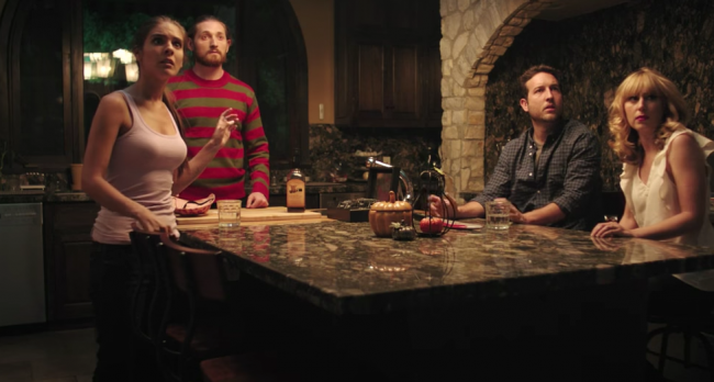 Joe, il protagonista del film, è infatti un grande appassionato di horror. Uno di quelli vagamente molesti, anche, che si esprime per citazioni ed è scemo come una talpa e nullafacente. Si fa mantenere dalla fidanzata ricca Linsdey (Caitlin Stasey, divina), così lui può continuare a guardare filmacci e a cazzeggiare mentre lei lavora. La sua concezione di appuntamento romantico è rappresentata da una haunted house, con gli attori che spuntano da ogni angolo a fare boo, mentre la povera ragazza se la fa addosso e lui ride di gusto, perché niente è in grado più di mettergli paura sul serio.