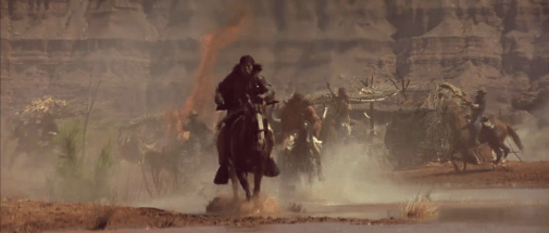 In un certo senso, l’irruenza selvaggia del cinema di Milius è arginata dall’attitudine riflessiva di un Walter Hill mai così antispettacolare, antieroico, antiretorico. Ancora una volta, Hill continua a sperimentare con il linguaggio, mirando all’essenza, eliminando tutto ciò che non è necessario, annientando quasi la presenza umana nello spazio. Il campo lungo o lunghissimo spesso non vede esseri umani al suo interno e persino gli avamposti americani sono, in qualche modo, posticci e provvisori. Esiste solo lo spazio estremo, quasi alieno, in cui si muovono 25 guerrieri che non si sono arresi. Curiosamente, per un regista notturno come Hill, il film è tutto girato in pieno giorno, il che rende ancora più violenta la sensazione apocalittica data dal paesaggio.