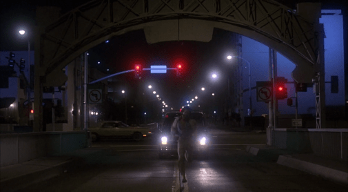Per dare questo senso di sovrapposizione continua, con i due personaggi principali che devono essere perennemente disorientati e dubbiosi sul confine tra sogno e realtà, McTiernan, oltre che giocare con il montaggio (ma questo non dovremmo neppure dirlo, tanto è scontato) si diverte tantissimo con con i cambi di fuoco, tanto che diventano una cifra stilistica ricorrente decine e decine di volte. Non tanto per passare il fuoco da un personaggio all’altro, ma tra lo sfondo e quello che dovrebbe essere teoricamente il soggetto principale dell’inquadratura. Non è niente di speciale e lo vediamo in centinaia di film, solo che in Nomads diventa un sistema narrativo, un modo per raccontare la perdita di aderenza alla realtà di Pommier e di Eileen, due personaggi che si incontrano una sola volta in tutto il film e che però restano legati da una condivisione profonda di esperienze e sensazioni, condivisione resa appunto da questi accorgimenti stilistici. Questo per dire McTiernan era già all’esordio un regista con le idee chiarissime sul piano visivo e Nomads è un film che forse non vanta una scrittura eccezionale e ogni tanto va pure in confusione, ma compensa con una chiarezza adamantina del narrato in immagini.