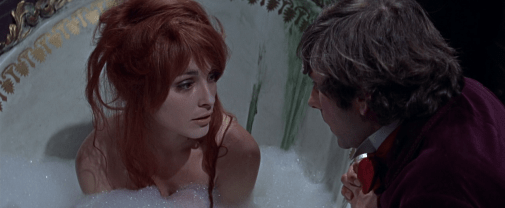 Soprattutto, Dance of the Vampires (chiamiamolo col titolo scelto da Polanski, così gli rendiamo giustizia) è un film di una bellezza da non credere ai propri occhi, con delle sequenze dal sapore fiabesco e onirico girate e fotografate in maniera sopraffina. Prendete, per esempio, la scena in cui Sarah viene attaccata e portata via dal conte mentre è nella vasca da bagno: una finestrella che si apre sul soffitto, i fiocchi di neve che penetrano all’interno della stanza e vanno a incorniciare il volto di Sharon Tate e il rosso del mantello del vampiro che appare all’improvviso, a spezzare con violenza questo attimo perfetto sospeso nel tempo. Siamo all’apice della potenza cinematografica, senza poi sfoggiare chissà quale virtuosismo, ma soltanto con la composizione di un paio di inquadrature. E aggiungo che si tratta anche di una sequenza horror molto efficace, perché se fosse solo una commedia di ambientazione gotica, il film non avrebbe alcun diritto di cittadinanza in questa rubrica (come infatti non ce l’ha Frankenstein Junior, nonostante io lo sappia a memoria e faccia parte dei dieci film della mia vita). Al contrario, Per Favore, non Mordermi sul Collo è un horror gotico che fa anche sorridere. È sì una parodia, ha sì degli elementi farseschi e quel tipo di comicità un po’ datata di cui abbiamo parlato prima, ma tiene per tutto il film una sotto-traccia sinistra, un senso di oscurità che è parte integrante del paesaggio naturale (molti degli esterni sono stati girati a Ortisei), una rassegnazione al perpetuarsi del male e del mistero in luoghi che ne sono carichi, più da folk horror che da horror gotico vero e proprio.