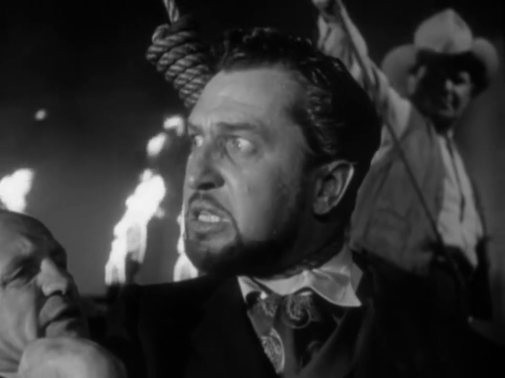 A dare volto e corpo a Reavis troviamo un giovane e non ancora famoso Vincent Price, che appare e scompare sotto una pioggia torrenziale come un fantasma e sfodera un fascino e un carisma con pochi eguali nella storia del cinema. Indossa il ruolo quasi fosse un abito realizzato su misura per lui, con la sua recitazione sempre un po’ sopra le righe, ma non ancora caricatissima come nei film di Castle o in quelli di Corman. Già si vede quanto la macchina da presa lo ami, quanta intensità sprigioni nei primi piani e diventa perfettamente naturale credergli anche quando sappiamo che sta raccontando menzogne.
