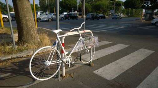 Tu di che parte d’Italia sei? Qui a Roma la ghost bike è diventata un’usanza consolidata solo da qualche tempo. Magari tra poco anche da te sarà così. O almeno, io lo spero, perché a vedere queste bici bianche, si prova un certo sgomento e, come dici tu, sarebbero molto più utili dei soliti mazzi di fiori.