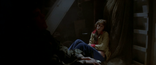 In nessun film dell’orrore, e dico davvero, nessuno, una ragazza che fa l’autostop da sola, di notte e poi si porta a letto lo sconosciuto che le ha dato un passaggio, sopravviverebbe fino ai titoli di coda. In The Fog sì. C’è anche una sequenza, che io credo sia stata inserita a bella posta, in cui la terribile bussata di Blake sembra annunciare un attacco e, noi ce lo aspettiamo, anzi, noi lo sappiamo, la conseguente morte di Elizabeth, punita come in ogni horror che si rispetti per il suo atteggiamento disinibito. E invece non succede niente; Jamie Lee arriva tranquilla a fine film, sopravvivendo alla nottataccia. Possiamo anche ipotizzare che ripartirà per il suo viaggio in autostop, che non mi pare il tipo di sposarsi con Tom Atkins e trasferirsi ad Antonio Bay per il resto della sua vita.