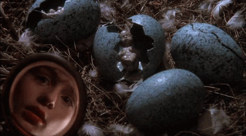 L’opera seconda di Neil Jordan è uno di quei film indefinibili, che restano isolati nella storia del cinema horror e nel sotto-genere cui appartengono. Impossibile trovare un film che somigli a In Compagnia dei Lupi, impossibile paragonarlo a qualunque altra cosa vi capiterà di vedere. Quando, all’inizio degli anni ’80, scoppiò una vera e propria mania per i licantropi, dovuta innanzitutto al progresso degli effetti speciali che permetteva finalmente di mostrare le trasformazioni a tutto schermo, il cinema britannico se ne uscì con questo oggetto misterioso, quasi una roba per iniziati. Molto ha fatto la partecipazione diretta di Angela Carter alla stesura del copione, ma la regia di Neil Jordan, signori miei, è da lacrime per la sua assoluta bellezza.