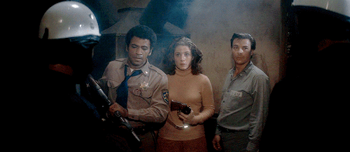 Dalla furia di Hooper passiamo all’eleganza gelida di Carpenter, che esordisce qui “ufficialmente” (Dark Star era un film studentesco gonfiato) e lascia subito il segno con un western urbano costato tre lire e mezza che è un distillato puro e semplice di ciò che intendo io per cinema anni ’70, quasi un saggio di cosa era possibile mettere in scena in un’epoca di vera anarchia cinematografica. E non è un caso che il new horror sia nato e prosperato in quegli anni, e che John Carpenter (per gli amici Dio) abbia trovato terreno fertile per far germogliare la sua arte.