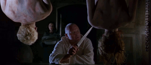 Chiudiamo in maniera atipica, facendo un po’ gli intellettuali e infilando in mezzo a streghe, squali e coccodrilli il caro Shakespeare, in questa versione barocca, anacronistica e ultra gore del Tito Andronico. È un film che vidi quasi per caso, in televisione, rimanendone anche un po’ traumatizzata, non tanto dalla violenza, ma dalla sfrontatezza della messa in scena. Forse considerarlo un horror è eccessivo, ma da queste parti siamo abituati a ben altri sconfinamenti di genere e non credo si scandalizzerà nessuno. La mano di Taymor è pesantissima, la recitazione enfatica quasi ai limiti del caricaturale, l’ambientazione mischia elementi di epoche sparse, infilando con disinvoltura motociclette nell’impero romano, e il tutto è trattato con i toni di un dark fantasy tendente al truculento. Ma ci piace un sacco, proprio per questo.