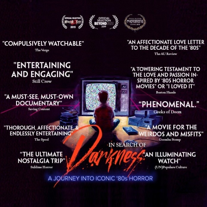 E ora, per alleggerirci un po’, che ne dite di quattro ore e mezza di documentario sull’horror degli anni ’80? In Search of Darkness è una smaccata operazione nostalgia canaglia, è quasi una forma di exploitation della nostalgia, ha un taglio volutamente conservatore, inteso nel senso di “tutto ciò che è vecchio è meglio”, e non c’è da stupirsi del contrario, perché è realizzato da appassionati cresciuti a pane e VHS. Dovete quindi sapere a cosa andate incontro: solita parata di vecchie glorie (ultime apparizioni in video di Stuart Gordon e Larry Cohen. Lacrimuccia), interviste, foto di backstage, racconto di come sono state girate certe scene divenute in seguito iconiche. Il film procede per arie tematiche e poi analizza un pugno di film significativi per ogni anno, dal 1980 al 1989. Non è che racconti chissà cosa di nuovo in relazione a quel periodo così prolifico per l’horror, ma lo fa molto bene, e soprattutto sottolinea come sia stata l’evoluzione degli effetti speciali a dare luogo all’esplosione di creatività caratterizzante gli anni ’80 nel cinema horror. Le oltre quattro ore di durata scivolano via che è una bellezza, quasi non ci si rende conto del tempo che passa. Vedere Carpenter che racconta di come sia stato buttato fuori dalla produzione di Firestarter è sempre una gioia, come del resto ascoltare i ricordi di Barbara Crampton e Kane Hodder. Non è un documentario di critica cinematografica, è una dichiarazione d’amore e, devo ammetterlo, ti manipola alla perfezione.