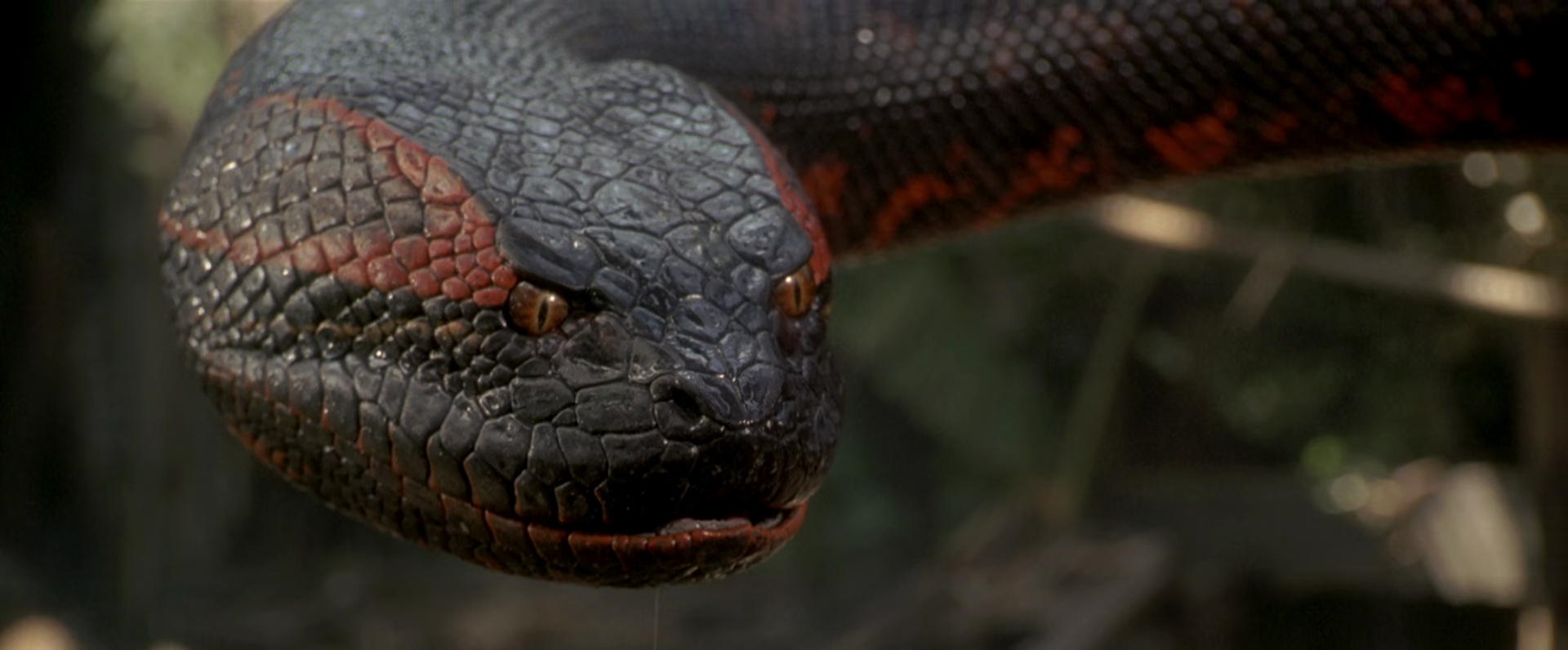 Anaconda è ciò che io chiamo un B movie coi soldi, ma senza pretese, una cosa che soltanto gli anni ’90 potevano regalarci. Pensate al costo del film: 45 milioni di dollari, che sì saranno andati in gran parte per pagare la rata del mutuo a Voight, ma se oggi i creature feature, come dicono quelli bravi, si fanno con la CGI, nel ’97 il serpente dalle dimensioni spropositate è quasi sempre un animatrone, e soltanto in circostanze ove era materialmente impossibile usare un effetto pratico viene chiamata in causa un brutta CGI, anche quella marchiata a fuoco anni ’90, e dal costo non irrisorio di 100.000 dollari al secondo.