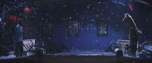 Willy’s Wonderland sfrutta benissimo l’ambientazione spettrale di un tempio del divertimento in piena decadenza, con un passato violento e dotato di malvagità intrinseca. È un low budget, e tuttavia da un buon lavoro con le luci, che diventano ogni minuto meno naturalistiche e deragliano nello psichedelico mentre Cage fa fuori uno a uno i mostri di pezza fino al boss finale; fa un buon lavoro anche con le scenografie, dando un’identità specifica a ogni stanza e, allo stesso tempo, mettendo in evidenza la miseria che contraddistingue posti simili.