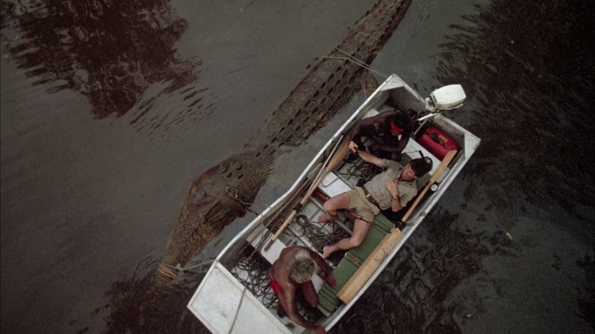 All’inizio, Steve sembra voler seguire, anche se non proprio con gioia, gli ordini dei suoi superiori: il ricatto è chiudere il programma di protezione dei coccodrilli e lasciare il campo libero ai bracconieri per fare una strage; poi sono proprio i due personaggi interpretati da Gulpilil e Burnham Burnham a dargli l’idea. Catturare il bestione e portarlo in una zona isolata e priva di umana presenza, che insomma, non è poi così difficile da reperire nel Queensland.