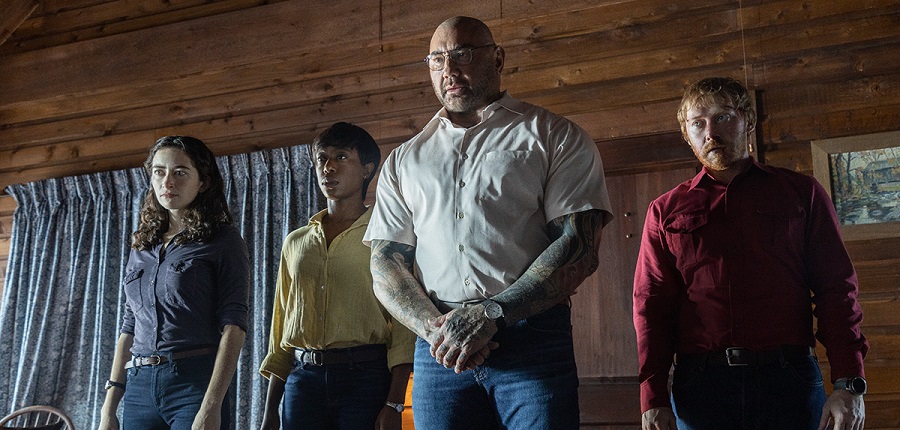 La bellissima e felicissima famiglia formata da papà Eric (Jonathan Groff), papà Andrew e dalla piccola Wen sta passando le vacanze in una casa sul lago, quando quattro sconosciuti, armati con degli attrezzi molto strambi, si presentano alla porta e chiedono di entrare. Non hanno un atteggiamento minaccioso, nonostante uno di loro sia quell’armadio di Dave Bautista, dicono di voler solo parlare, ma che non esiteranno a introdursi in casa con metodi poco ortodossi se i due uomini non apriranno subito la porta; una volta dentro, immobilizzano Eric e Andrew e spiegano loro il motivo per cui sono lì: delle visioni li hanno resi edotti dell’imminente fine del mondo, che si abbatterà sull’umanità tramite una serie di piaghe. L’unico modo per evitarla è che la famiglia ora prigioniera decida di sacrificare volontariamente uno dei suoi membri. In altre parole, Eric deve uccidere Andrew o viceversa, pena la morte di ogni essere umano sul pianeta.
