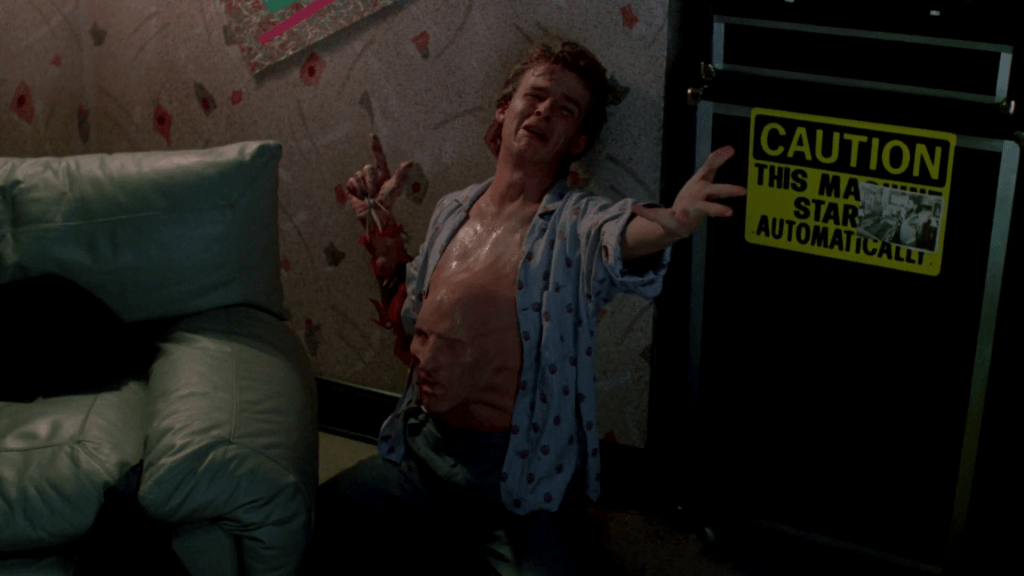 Ma, se lasciamo un istante da parte la complessa relazione di Freddy’s Revenge con il resto della saga, bisogna ammettere che come body horror non è affatto male, soprattutto considerando che, caso più unico che raro, abbiamo un protagonista maschile che in una scena mette letteralmente al mondo Fred Krueger; lo partorisce di fronte allo sguardo sbigottito e terrorizzato del suo vero love interest, Rob Grady (Robert Rusler), in uno dei coming out più traumatici ed esplosivi mai messi in scena. Tanto che Grady fa subito una brutta fine: prima di tornare nel rassicurante alveo delle relazioni normative, è necessario uccidere la tentazione. O anche: Freddy è la punizione divina (leggi AIDS), il guanto artigliato di Dio che si abbatte su chi non segue le regole.