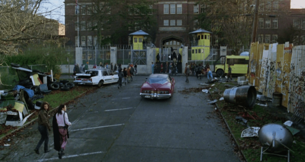 Dopo le due delusioni patite nei giorni precedenti, questa volta andiamo sul sicuro con un confortevole B movie. Ma prima, spieghiamo i temi della challenge: il day 18 richiedeva un film con Toni Collette e io mi sono rivista il remake di Fright Night che è sempre una delizia; il day 19 è invece dedicato alle “Killer Machines”, una categoria molto ampia che può spaziare tranquillamente da La Fabbrica delle Mogli a Terminator, passando per The Mangler. Io mi sono andata a recuperare questo piccolo classico che, durante la mia tarda infanzia (o pre-adolescenza) mal spesa, passava in tv quattordici volte l’anno, come minimo. Dato che non lo rivedevo da allora, ho pensato sarebbe stato divertente tirarlo fuori dalla naftalina e vedere cosa gli aveva combinato lo scorrere del tempo. Risposta: niente di irreparabile; Classe 1999 è rimasto lo stesso, identico, stolido e strafottente filmaccio di serie B di 33 anni fa; è invecchiato benissimo, regge perfettamente il peso dei suoi anni e ha ancora degli effetti speciali prodigiosi.