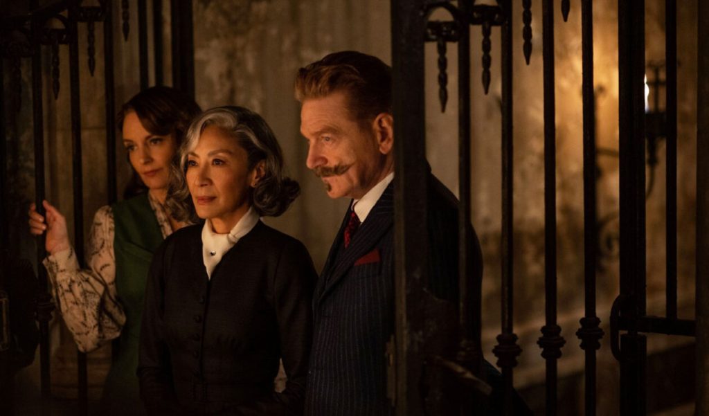 Abbiamo un Poirot stanco e sfiduciato e che Venezia è andato a ritirarsi e a nascondersi dal resto del mondo. Viene raggiunto da una sua conoscente, una famosa scrittrice di gialli, Ariadne Oliver (altro personaggio fisso nei libri di Christie) che gli chiede di presenziare a un party in un palazzo infestata per smascherare una famosa medium, interpretata da Michelle Yeoh. La leggenda vuole che nel palazzo, dove adesso vive una ex cantante lirica che ha da poco perso la figlia, vaghino le anime tormentate di alcuni bambini lasciati lì a morire durante la peste, quando la magione era un orfanotrofio. Ovviamente, Poirot è scettico, ma quando la medium viene trovata morta in circostanze molto misteriose, forse sarà costretto a ricredersi.