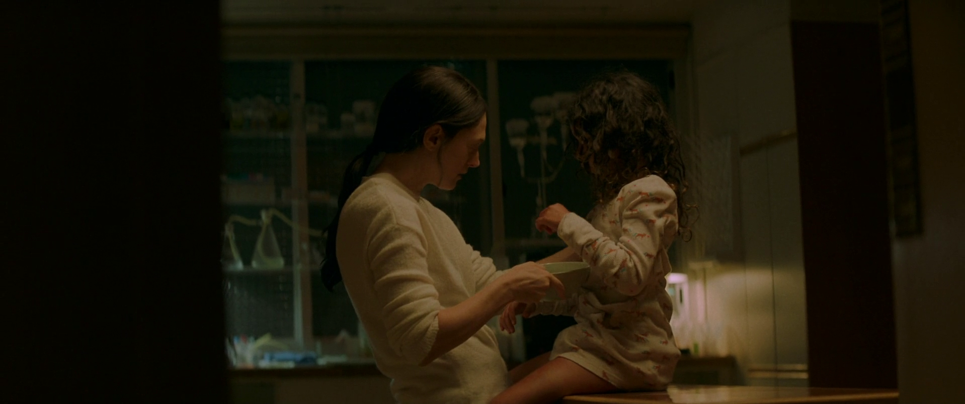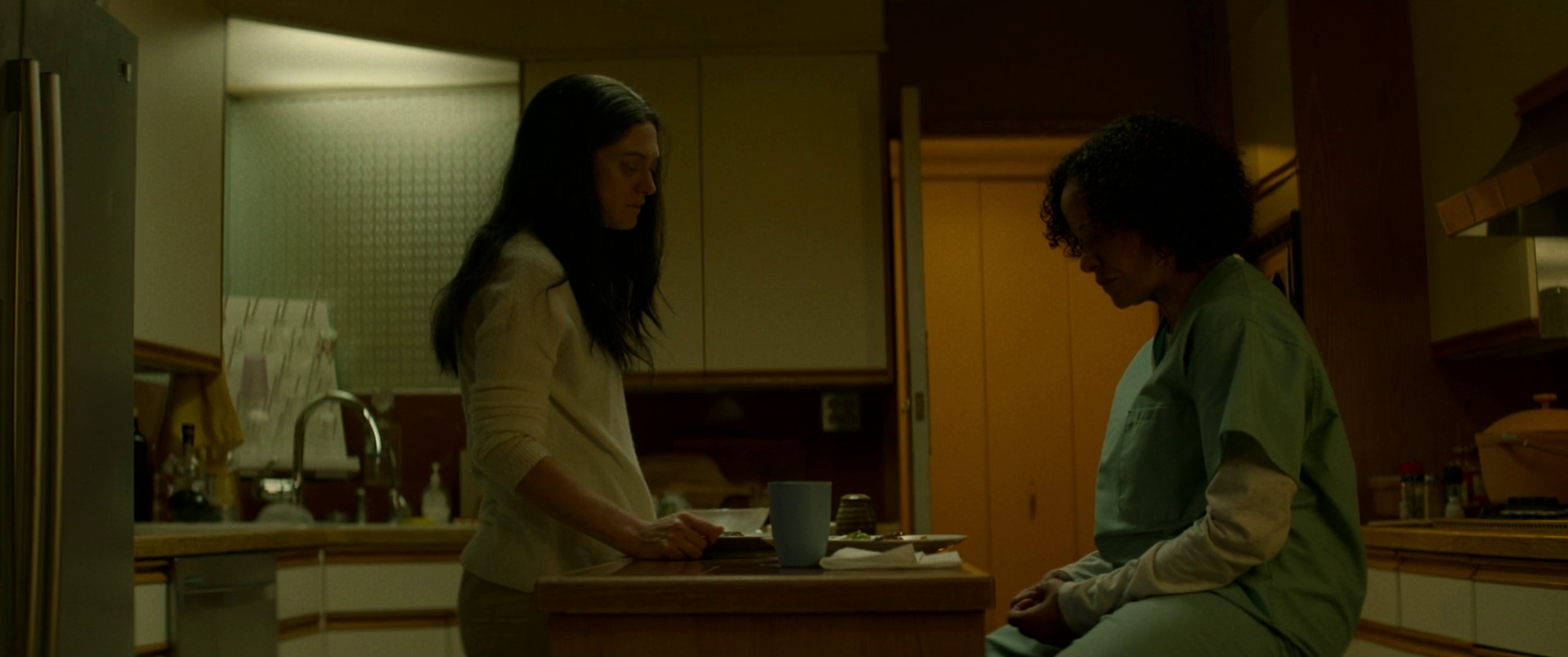 Paradossalmente, questo carico emotivo pesantissimo, viene messo sulle spalle dello spettatore da Moss tramite un uso molto straniante di umorismo macabro. Le due attrici, soprattutto Ireland, ma perché lo richiede il ruolo, capiscono al volo che una storia così assurda può essere raccontata soltanto ricorrendo a delle dosi massicce di ironia e agiscono di conseguenza; la sceneggiatura, dal canto suo, è piena zeppa di dialoghi tra le due che ricordano quasi una sit com virata al nero, e sit com non è un termine usato a sproposito: gran parte del film si svolge all’interno dell’appartamento di Rose, con qualche sortita in ospedale. Difficilmente si esce alla luce del giorno e l’illuminazione della casa è fatta in maniera tale da metterla sempre in penombra. È claustrofobico, è triste, è di un’angoscia mortale, eppure non si può fare a meno di sorridere agli scambi di battute tra Rose e Celie, all’insofferenza di Rose per i cartoni animati che guarda Lila, allo sgomento di Celia di fronte all’inettitudine sociale di Rose e via così.