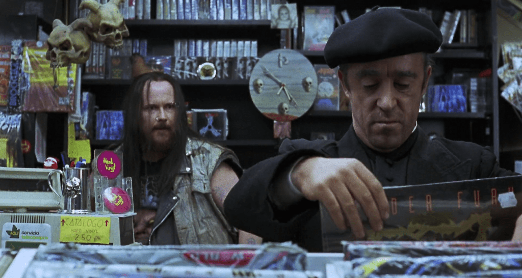 In questa bislacca corsa contro il tempo (bisogna uccidere il figlio del demonio appena nato), ne succederanno di tutti i colori, il nostro sant’uomo diventerà il più terribile dei peccatori, e satanasso si manifesterà a ogni angolo di strada, lanciando segni ambigui e ambivalenti, mandando il trio fuori strada, conducendolo nei più loschi angoli di Madrid al ritmo di death metal. Dio, se lo amo, questo film.