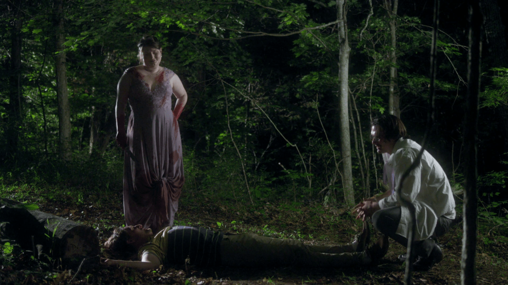 Bystanders si inserisce, forse anche un po’ tardivamente, nella recente ondata di rape & revenge scritti e diretti da donne culminata con Promising Young Woman nel 2020. Non fa quindi niente di nuovo o inaspettato, perché è il rape & revenge a essere un filone ripetitivo di suo e a seguire uno schema che, di fatto, è sempre lo stesso. L’elemento destabilizzante è rappresentato da Clare e Gray, che sono un duo di serial killer alla Dexter (citato apertamente da uno dei personaggi del film): uccidono soltanto i cattivi e, nel loro caso specifico, gli stupratori. Agli occhi di Abby, dopo lo sconcerto iniziale, appaiono come due creature magiche o come due sostituti di figure genitoriali, a seconda di come lei li vede agire: arrivano lì per caso, la proteggono, le danno dei vestiti nuovi per togliersi quelli strappati e rovinati, la coccolano e, allo stesso tempo e senza alcuna difficoltà, fanno fuori uno a uno i ragazzi che hanno ucciso le sue amiche e stavano per uccidere lei, dispensando lungo il cammino esilaranti perle di saggezza. Questa, l’idea forte del film, che forse avrebbe funzionato ancora meglio se fosse deragliato completamente nel lato commedia, invece di starsene lì incerto su che direzione prendere.