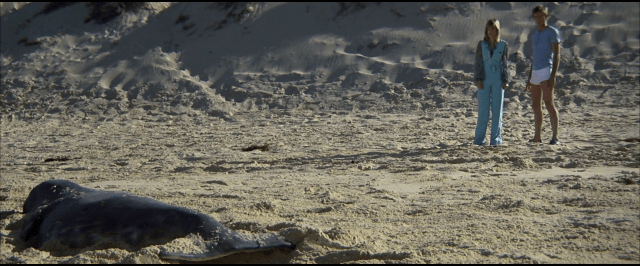 Long Weekend non è un film canonicamente spaventoso: di fatto, succede molto poco fino all’ultimo quarto d’ora, e anche lì, il compimento del destino di Marcia e Peter si verifica per mano umana. Non arriva il serpente velenoso a morderli o lo squalo bianco a divorarli. Non ci sono ragni giganti o cinghiali inferociti. Quasi tutte le bestie che i due incontrano sono innocue o comunque compiono danni limitati: l’opossum morde Peter e l’aquila lo attacca perché vorrebbe indietro il suo uovo; il povero dugongo non fa altro che nuotargli accanto, e lui per tutta risposta gli spara, uccidendolo.