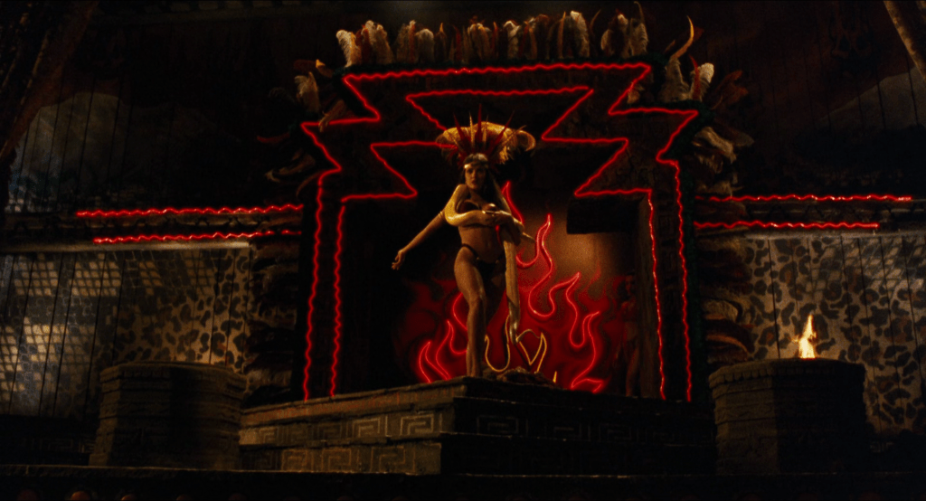 Voglio molto bene a questo film, ne voglio a Rodriguez perché è un cialtrone come me e tra cialtroni dobbiamo sostenerci a vicenda; non ne voglio a Tarantino per parecchi motivi, pur avendo amato il suo cinema in gioventù (e anche dopo, è inutile che faccio finta), e in effetti parlare di Dal Tramonto all’Alba un po’ mi mette in difficoltà. La sceneggiatura di Dal Tramonto all’Alba è il classico frappè citazionista che, arrivati nel 2026, conosciamo come le nostre tasche, tanto che, a rivederlo ora, viene pure un po’ a noia. Col senno di poi, e quindi non della diciassettenne entusiasta che è andata al cinema trent’anni fa, la prima parte, quella più chiaramente action, è la sezione debole del film. Non appena si entra nel Titty Twister, sale sul palco Santanico Pandemoniun (Salma Hayek, a oggi ancora la persona più sensuale mai apparsa su uno schermo), e Richie fa la fine che merita, Dal Tramonto all’Alba parte a razzo e rimane una delle esperienze cinematografiche più divertenti cui sottoporsi in una gelida sera di gennaio.